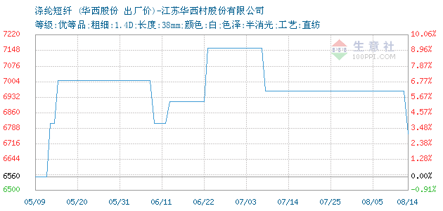 01月12日江苏华西村股份有限公司关于涤纶短纤的报价为7410元/吨。涤纶短纤的规格:等级:优等品;粗细:1.4D;长度:38mm;颜色:白;色泽:半消光;工艺:直纺。该报价有效期为3天。报价提供方:江苏华西村股份有限公司。