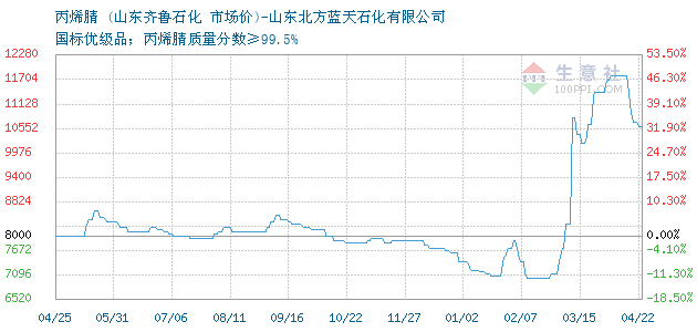 01月12日山东齐鲁石化关于丙烯腈的报价为11500元/吨。丙烯腈的规格:国标;丙烯腈质量分数≥99.5%。该报价有效期为3天。报价提供方:山东北方蓝天石化有限公司。