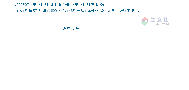 01月13日中欣化纤关于涤纶POY的报价为7860元/吨。涤纶POY的规格:分类:熔体纺;粗细:150D;孔数:48F;等级:优等品;颜色:白;色泽:半消光。该报价有效期为3天。报价提供方:桐乡中欣化纤有限公司。