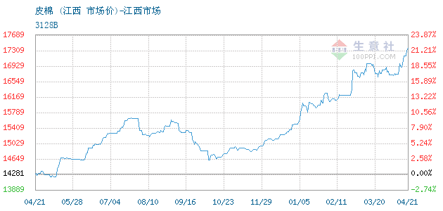 01月14日江西地区关于皮棉的报价为22165元/吨。皮棉的规格:3128B。该报价有效期为1天。报价提供方:江西市场。