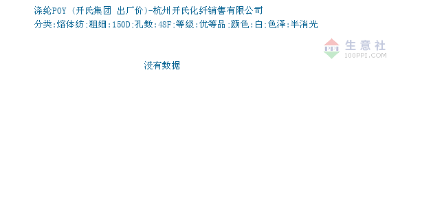 01月20日开氏集团关于涤纶POY的报价为7800元/吨。涤纶POY的规格:分类:熔体纺;粗细:150D;孔数:48F;等级:优等品;颜色:白;色泽:半消光。该报价有效期为3天。报价提供方:杭州开氏化纤销售有限公司。