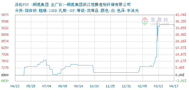 01月25日桐昆集团股份有限公司关于涤纶POY的报价为8160元/吨。涤纶POY的规格:分类:熔体纺;粗细:150D;孔数:48F;等级:优等品;颜色:白;色泽:半消光。该报价有效期为3天。报价提供方:桐昆集团浙江恒腾差别纤维有限公司。
