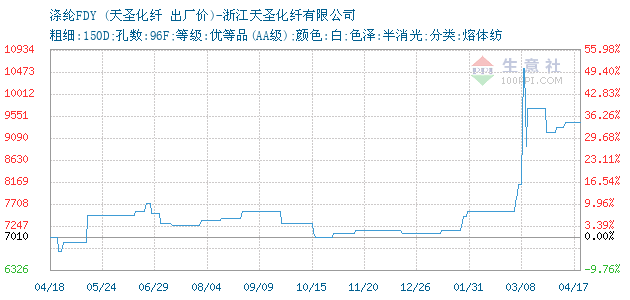 01月29日浙江天圣化纤有限公司关于涤纶FDY的报价为8200元/吨。涤纶FDY的规格:粗细:150D;孔数:96F;等级:优等品(AA级);颜色:白;色泽:半消光;分类:熔体纺。该报价有效期为3天。报价提供方:浙江天圣化纤有限公司。