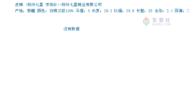 02月16日郑州七星关于皮棉的报价为24120元/吨。皮棉的规格:产地:新疆 颜色:白棉三级100% 马值:5 长度:29.3 比强:28.9 长整:83 含杂:2.4 回潮:7.2。该报价有效期为1天。报价提供方:郑州七星棉业有限公司。
