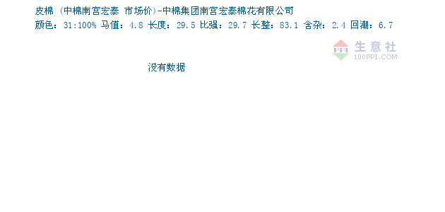 02月16日中棉集团关于皮棉的报价为23218元/吨。皮棉的规格:颜色:31:100% 马值:4.8 长度:29.5 比强:29.7 长整:83.1 含杂:2.4 回潮:6.7。该报价有效期为1天。报价提供方:中棉集团南宫宏泰棉花有限公司。