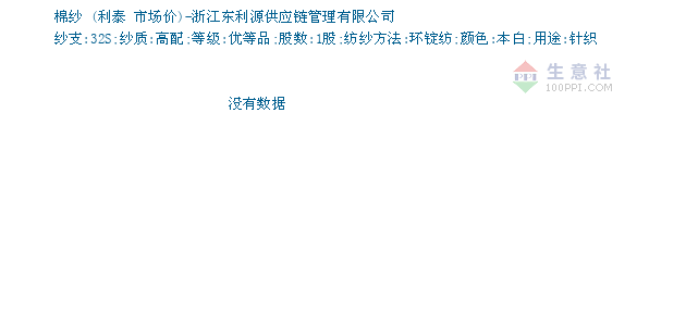 02月24日利泰关于棉纱32S的报价为30000元/吨。棉纱32S的规格:纱支:32S;纱质:高配;等级:优等品;股数:1股;纺纱方法:环锭纺;颜色:本白;用途:针织。该报价有效期为3天。报价提供方:浙江东利源供应链管理有限公司。