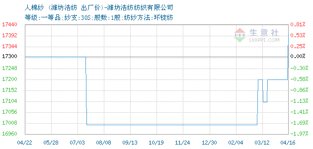 02月07日潍坊浩纺纺织有限公司关于人棉纱的报价为18000元/吨。人棉纱的规格:等级:一等品;纱支:30S;股数:1股;纺纱方法:环锭纺。该报价有效期为3天。报价提供方:潍坊浩纺纺织有限公司。