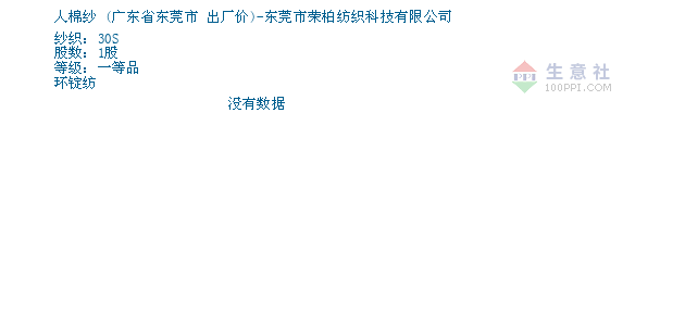 02月09日广东省东莞市关于人棉纱的报价为18200元/吨。人棉纱的规格:纱织:30S股数:1股等级:一等品环锭纺。该报价有效期为3天。报价提供方:东莞市荣柏纺织科技有限公司。
