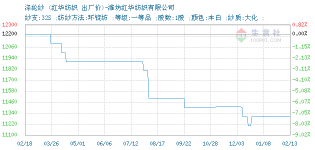 03月14日潍坊红华纺织有限公司关于32S涤纶纱的报价为14000元/吨。32S涤纶纱的规格:纱支:32S ;纺纱方法:环锭纺 ;等级:一等品 ;股数:1股 ;颜色:本白 ;纱质:大化 ;。该报价有效期为3天。报价提供方:潍坊红华纺织有限公司。