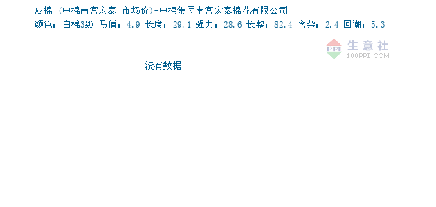 03月16日中棉南宫宏泰关于皮棉的报价为23260元/吨。皮棉的规格:颜色:白棉3级 马值:4.9 长度:29.1 强力:28.6 长整:82.4 含杂:2.4 回潮:5.3。该报价有效期为3天。报价提供方:中棉集团南宫宏泰棉花有限公司。