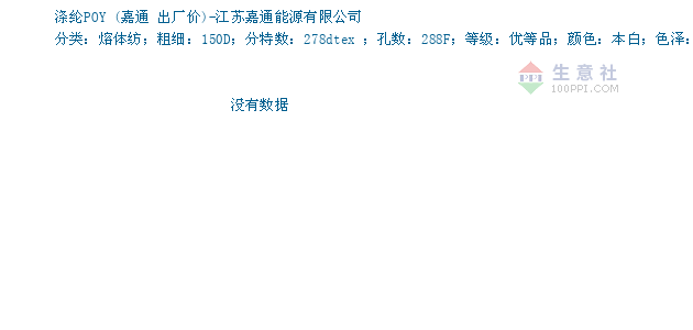 03月16日嘉通关于涤纶POY的报价为8450元/吨。涤纶POY的规格:分类:熔体纺;粗细:150D;分特数:278dtex ;孔数:288F;等级:优等品;颜色:本白;色泽:半消光;截面形状:圆孔。该报价有效期为1天。报价提供方:江苏嘉通能源有限公司。