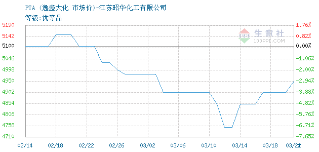 03月23日逸盛大化关于PTA的报价为6200元/吨。PTA的规格:等级:优等品。该报价有效期为3天。报价提供方:江苏昭华化工有限公司。