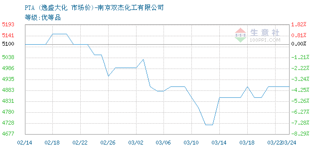 03月28日逸盛大化关于PTA的报价为6100元/吨。PTA的规格:等级:优等品。该报价有效期为3天。报价提供方:南京双杰化工有限公司。