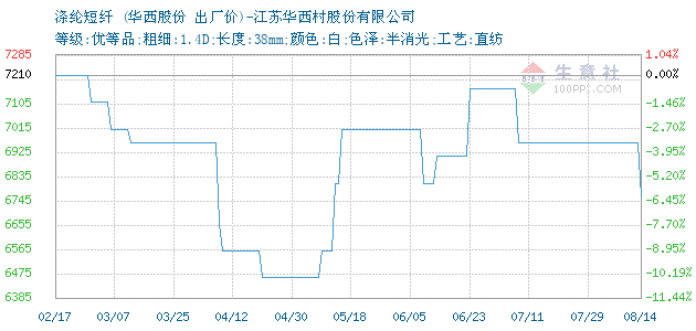 03月07日江苏华西村股份有限公司关于涤纶短纤的报价为8510元/吨。涤纶短纤的规格:等级:优等品;粗细:1.4D;长度:38mm;颜色:白;色泽:半消光;工艺:直纺。该报价有效期为3天。报价提供方:江苏华西村股份有限公司。