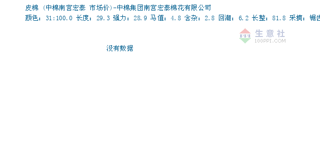 03月09日中棉南宫宏泰关于皮棉的报价为23150元/吨。皮棉的规格:颜色:31:100.0 长度:29.3 强力:28.9 马值:4.8 含杂:2.8 回潮:6.2 长整:81.8 采摘:锯齿机采棉。该报价有效期为1天。报价提供方:中棉集团南宫宏泰棉花有限公司。