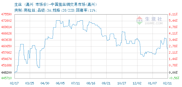 04月18日中国茧丝绸交易市场(嘉兴)关于生丝的报价为435000元/吨。生丝的规格:类别:商检丝;品级:3A;规格:20/22D;回潮率:11%;。该报价有效期为3天。报价提供方:中国茧丝绸交易市场(嘉兴)。