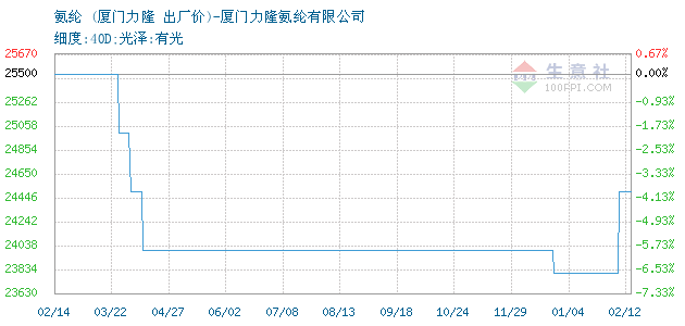 04月02日厦门力隆氨纶有限公司关于氨纶的报价为56000元/吨。氨纶的规格:细度:40D;光泽:有光。该报价有效期为7天。报价提供方:厦门力隆氨纶有限公司。