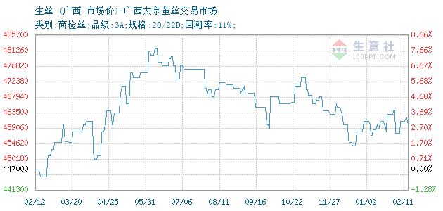 04月24日广西大宗茧丝交易市场关于生丝的报价为386500元/吨。生丝的规格:类别:商检丝;品级:3A;规格:20/22D;回潮率:11%;。该报价有效期为3天。报价提供方:广西大宗茧丝交易市场。