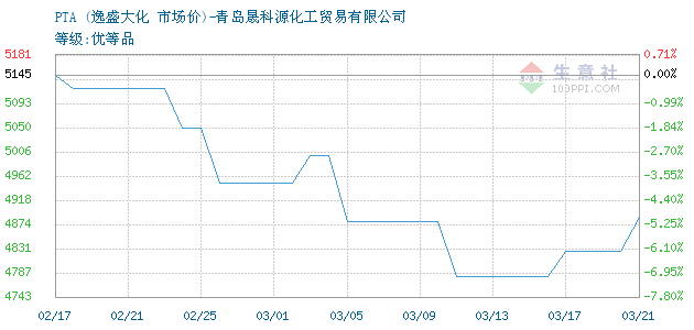 05月12日逸盛大化关于PTA的报价为6710元/吨。PTA的规格:等级:优等品。该报价有效期为3天。报价提供方:青岛晟科源化工贸易有限公司。