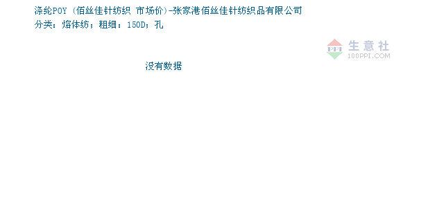 05月16日佰丝佳针纺织关于涤纶POY的报价为8200元/吨。涤纶POY的规格:分类:熔体纺;粗细:150D;孔。该报价有效期为3天。报价提供方:张家港佰丝佳针纺织品有限公司。