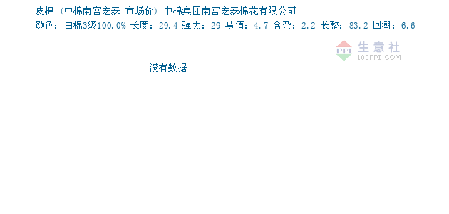 05月23日中棉南宫宏泰关于皮棉的报价为22250元/吨。皮棉的规格:颜色:白棉3级100.0% 长度:29.4 强力:29 马值:4.7 含杂:2.2 长整:83.2 回潮:6.6。该报价有效期为1天。报价提供方:中棉集团南宫宏泰棉花有限公司。