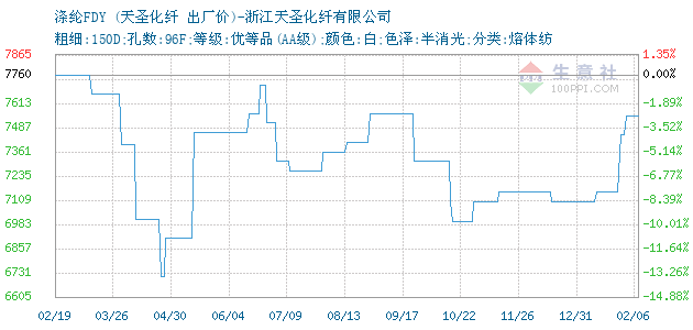 05月30日浙江天圣化纤有限公司关于涤纶FDY的报价为9310元/吨。涤纶FDY的规格:粗细:150D;孔数:96F;等级:优等品(AA级);颜色:白;色泽:半消光;分类:熔体纺。该报价有效期为3天。报价提供方:浙江天圣化纤有限公司。