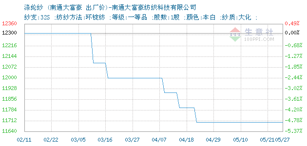 06月13日南通大富豪纺织科技有限公司关于32S涤纶纱的报价为15600元/吨。32S涤纶纱的规格:纱支:32S ;纺纱方法:环锭纺 ;等级:一等品 ;股数:1股 ;颜色:本白 ;纱质:大化 ;。该报价有效期为3天。报价提供方:南通大富豪纺织科技有限公司。