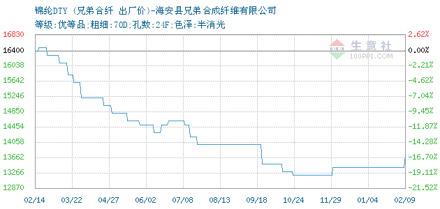 06月17日海安县兄弟合成纤维有限公司 关于锦纶DTY的报价为20500元/吨。锦纶DTY的规格:等级:优等品;粗细:70D;孔数:24F;色泽:半消光。该报价有效期为3天。报价提供方:海安县兄弟合成纤维有限公司。