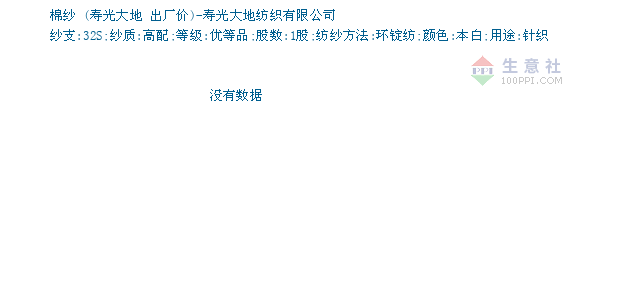 06月21日寿光大地关于棉纱32S的报价为30500元/吨。棉纱32S的规格:纱支:32S;纱质:高配;等级:优等品;股数:1股;纺纱方法:环锭纺;颜色:本白;用途:针织。该报价有效期为3天。报价提供方:寿光大地纺织有限公司。