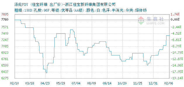 06月29日浙江佳宝新纤维集团有限公司关于涤纶FDY的报价为9210元/吨。涤纶FDY的规格:粗细:150D;孔数:96F;等级:优等品(AA级);颜色:白;色泽:半消光;分类:熔体纺。该报价有效期为3天。报价提供方:浙江佳宝新纤维集团有限公司。