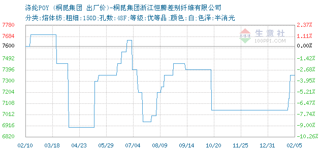06月30日桐昆集团股份有限公司关于涤纶POY的报价为8860元/吨。涤纶POY的规格:分类:熔体纺;粗细:150D;孔数:48F;等级:优等品;颜色:白;色泽:半消光。该报价有效期为3天。报价提供方:桐昆集团浙江恒腾差别纤维有限公司。