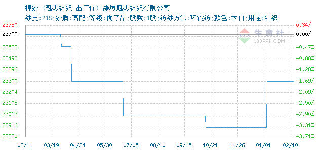 06月09日冠杰纺织棉纱21S为29700元