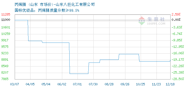 07月18日山东丙烯腈为9900元