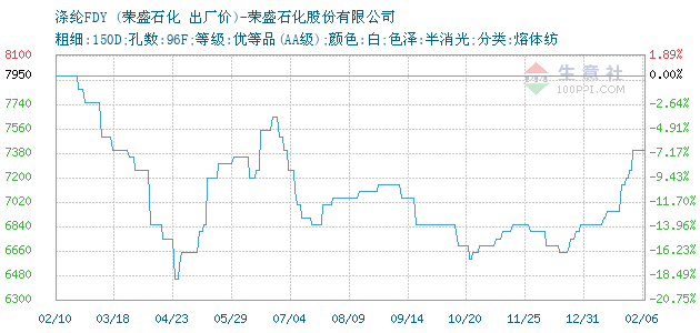 07月27日荣盛石化关于涤纶FDY的报价为8600元/吨。涤纶FDY的规格:粗细:150D;孔数:96F;等级:优等品(AA级);颜色:白;色泽:半消光;分类:熔体纺。该报价有效期为3天。报价提供方:荣盛石化股份有限公司。