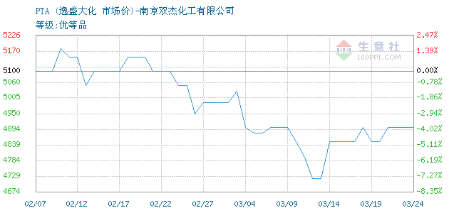 08月03日逸盛大化关于PTA的报价为6200元/吨。PTA的规格:等级:优等品。该报价有效期为3天。报价提供方:南京双杰化工有限公司。